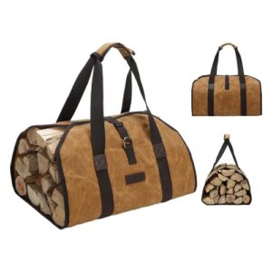 薪キャリア – ハンドル付き木製バッグ | 薪用木製キャリア | 暖炉ログキャリア 屋内薪ストーブ アウトドア キャンプ 防水 収納バッグ キャンプ BBQ バーベキュー用