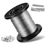 ステンレスワイヤーロープ(線径1mm、30m巻、7×7構造)は耐食性と防錆性能を持ち、切断荷重100kgで多用途に対応。物干し、地震対策、DIY、工事用に最適。アルミスリーブ30個付き。