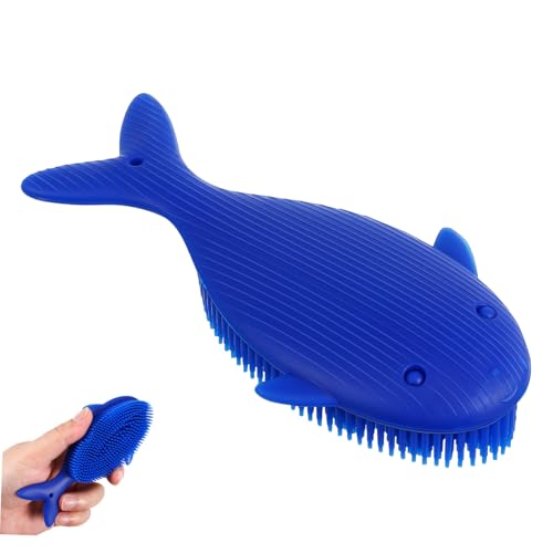 Holibannaのクジラ型シリコン製ボディスクラバーは、シャワー用のかわいいデザインで、ヘチマのように洗浄・マッサージ効果があります。再利用可能で、頭皮ケアや背中・足洗いにも最適です。