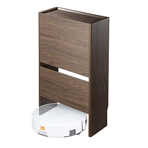 サンワダイレクトのケーブルボックスは、ルンバ基地として使用可能な木製の収納ボックスです。3段設計で高さ65cm、ダークブラウンの木目調で、ルーターやロボット掃除機をすっきり収納できます。