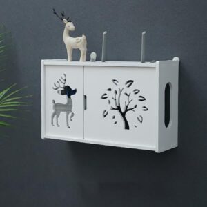 WYRNOBRX WiFiルーター収納キャビネットPVC素材WiFiルーター収納ボックスモデムスタンド隠しカバーWiFi信号遮蔽カバー装飾性ケーブル収納整理ボックス組み立て式オフィス/家庭/寝室向け,White/b,L39*H24*W12
