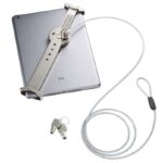 サンワダイレクトのセキュリティワイヤーは、7~10.5インチのタブレットやiPadに対応。盗難防止のための鍵2個付き。カラーはシルバーで、安心して使用できます。
