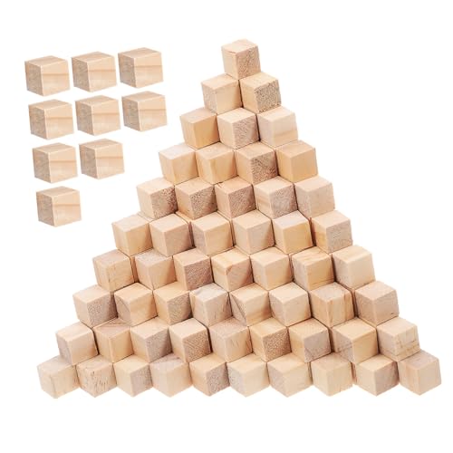 NUOBESTYの木製キューブは500個入り、松木製でサイズは1cmの立方体です。未完成のウッドブロックで、DIYや工作に適しており、研磨仕上げが施されています。自然な木の色合いで、総重量約231gです。