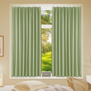 YKFN 遮光カーテン 220cm丈 幅190cm 1枚 小窓 カーテン 遮光 おしゃれ 無地 断熱 保温 UVカット 防寒 防音 遮熱 省エネ 節電対策 昼夜目隠し 間仕切り ドレープカーテン 遮光 アジャスターフック付き 北欧 シンプル 洗える グリーン
