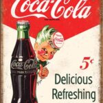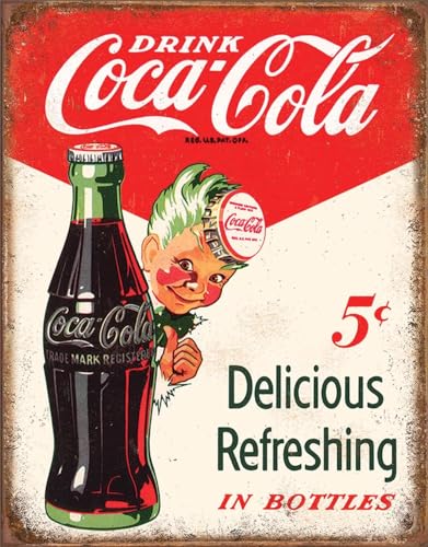 アメリカン雑貨のレトロなコカ・コーラ装飾。サイズ20cm×30cmのブリキ看板は、ガーデン、フラワーショップ、バー、クラブなどの壁装飾に最適。カフェやガレージにもぴったりなアートメタルサイン。