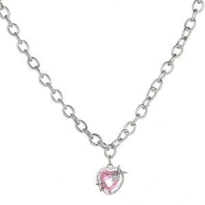 Greabuy女性用ネックレス、ハートペンダントネックレスペンダントチョーカー合金素材ハートペンダント襟骨チェーンファッション愛好家に最適, 画像をご参照ください。