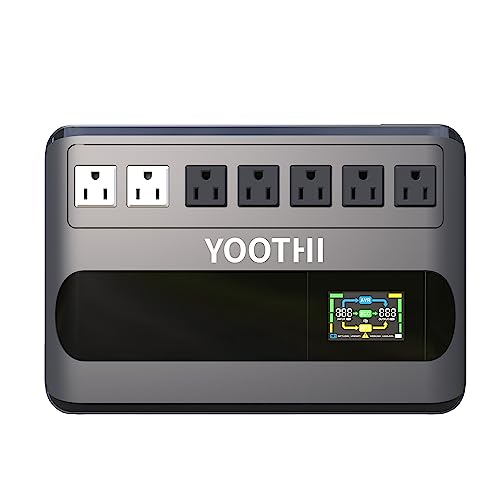 Yoothi GF1000は500W/1000VAのOffline UPSで、正弦波出力の安定したバックアップ電源です。3年保証付きで、オフィスや災害対策に最適な製品です。