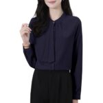 Yinoの長袖シャツブラウスは、リボンやギャザーが特徴で体型カバーも可能。おしゃれで女性らしいデザインはカジュアルやビジネスシーンにもぴったり。秋や春に最適な一着です。