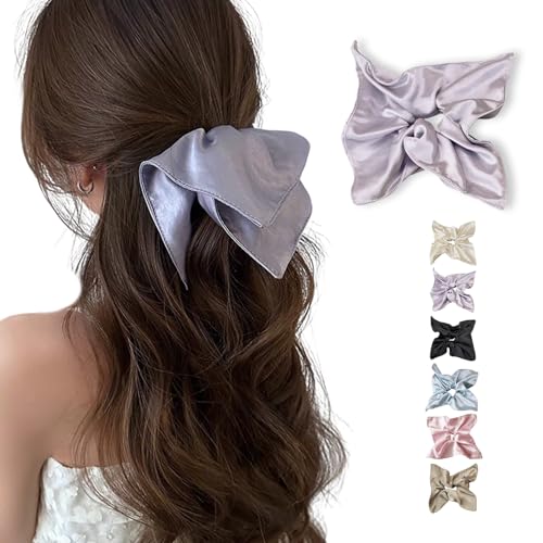 Fesanlaのシルクヘアゴムは、サテン素材の大きめシュシュでボリューム感が魅力。無地のパープル色が大人の髪飾りとしてぴったり。1個入りで、ヘアアクセサリーに最適です。