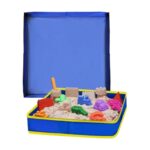 折りたたみ砂場トレーは、サイズ50×50×9cmで、持ち運びや収納に便利。耐久性のある素材を使用し、安全性に配慮。子どもたちが楽しく遊べるシンプルなデザイン。