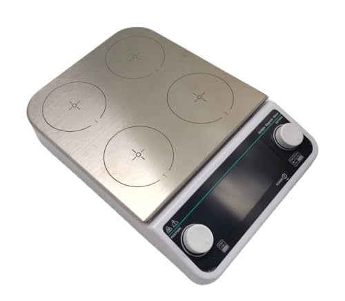 CNYST マルチマグネチックスターラーは4つのポジションを持ち、500mlの容器に対応。速度は50-1200rpmで無段階調整可能。最大温度は120℃まで対応し、研究室での使用に最適です。