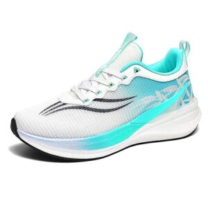 [FEEDU] ランニングシューズ メンズ レディース ウォーキングシューズ 厚底 スニーカー メンズ 白 黑 体育館シ ューズ 軽量 クッション性 人気 運動靴 ジョギングシュ ーズ マラソン スポーツ トレーニング 競技用 (ホワイト/シアン,23.0 cm)