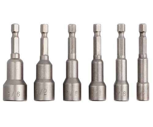 Bestgleの6本セットのソケットビットは、1/4インチ六角シャンクに対応し、磁石付きでインパクトレンチに最適です。サイズは9/16、1/2、7/16、3/8、5/16、1/4です。