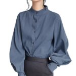 スイーヤのレディースシャツは、スタンドカラーとレトロなパフスリーブが特徴。きれいめで着痩せ効果があり、ゆったりとしたデザイン。オフィス、ビジネス、カジュアルシーンに最適。春秋冬に着用可能なアイテム。