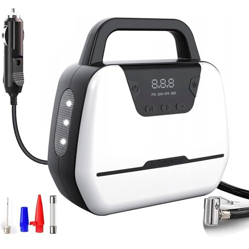 電動空気入れは家庭用110V、車用電源両方対応。最大圧力150PSI、空気圧指定可能。車、ロードバイク、ボール、浮き輪、バイクに対応。携帯便利でパワーバンク搭載。