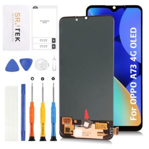 SRJTEK For OPPO A73 4G 有機EL液晶パネル画面交換修理用キット【指紋認証付き【OEMではない】SIMフリㄧ、楽天モバイル 6.44インチ タッチパネルデジタイザー液晶ディスプレイLCDスクリーン修理工具付き(ブラック)