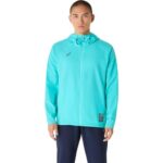 [アシックス] ドライアクティモーションクロスフーディージャケット 2031E980は、ユニセックスのトレーニングウェアで、402(エナジーアクア)のカラーが特徴です。サイズはMで、快適な動きやすさを提供します。