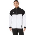 アシックスのドライハイブリッドストレッチニットジャケット(2031F169)は、ユニセックス仕様で快適な着心地を提供します。パフォーマンスブラックとブリリアントホワイトの色合いが特徴のLサイズ。