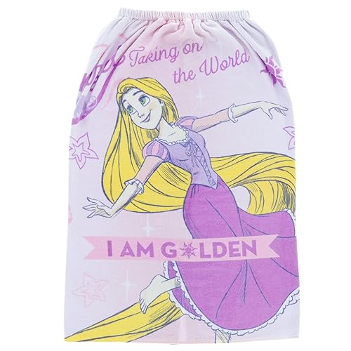 ラプンツェルデザインのラップタオル。サイズは80cmで、子ども向けの水着やお風呂上がりに最適です。柔らかい素材で肌触りも良く、可愛いキャラクターが子どもたちに大人気。