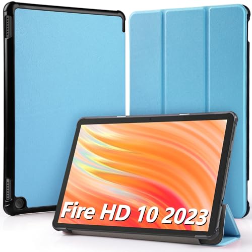 Hianjoo Fire HD 10 2023対応の10インチタブレットケース。スタンド機能とオートスリープ機能付きで、全面保護し耐衝撃・擦り傷防止のブルーカバーです。