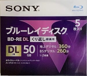 ソニーのBD-RE 20枚入りは、1枚あたり100GBの容量を持ち、地デジ収録約12時間が可能。1-2倍速での録画に対応し、ディスク用ケースが付属しています。モデル番号は20BNE3VEPS2です。
