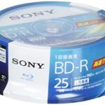 ソニーのブルーレイディスクBD-R 25GBは1回録画用で、1枚あたり地デジ約3時間の録画が可能。20枚入りで6倍速ダビングに対応、ケース無しの仕様です。