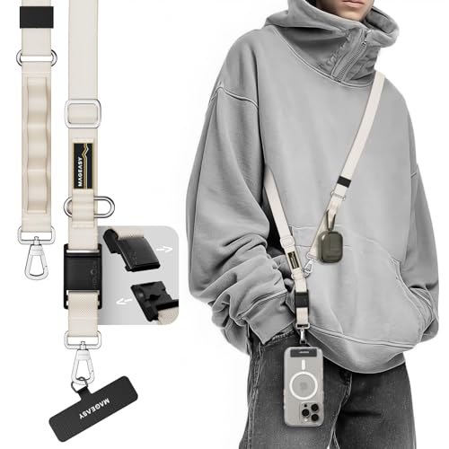 MAGEASY 20mm FidLock デュアルクロスボディ ユーティリティストラップ – 調節可能なクロスボディ 携帯電話ストラップ 磁気クイックリリースバックル付き ユニバーサルで耐久性のあるストラップ iPhone 16 Pro Maxとほとんどのスマートフォン用 – スターライト