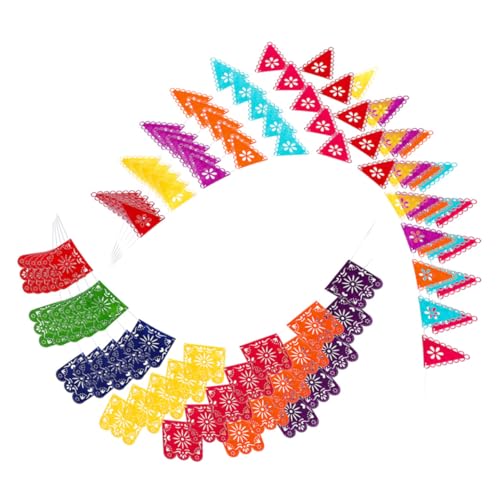 FRCOLOR メキシコフェルトバナーは、フィエスタや誕生日、カーニバル、死者の日の装飾に最適。アソートカラーの四角5枚、三角5枚、合計500cmの吊り下げ可能なデザインで、屋内外にぴったりです。