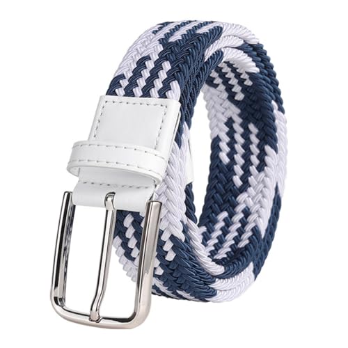 JoyFusion 紳士ベルト メンズ メッシュナイロン製の伸縮ベルト。フリーサイズでカジュアル、ビジネス、ゴルフ用に最適。白ゴム仕様、青と白のデザイン、全長115CM。[並行輸入品]