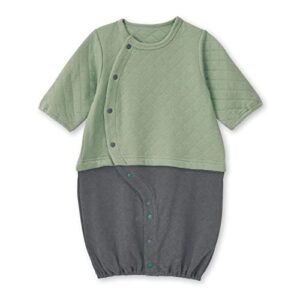 [ベルメゾン] ツーウェイオール 女の子 男の子 あったか ニットキルト レイヤード風 ベビー用ロンパース・カバーオール スモーキーグリーン×チャコール 50~60