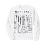 ヴィンテージな整備士トレーナー。車やガレージの修理ツールを特許プリントでデザイン。機能性とスタイルを兼ね備えた一着です。
