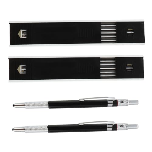 HOMSFOU 2セットのメタル製機械式シャープペンシルは、耐久性が高く、精密描画や大工業に適した設計。リトラクタブル芯ホルダーで、滑り止めグリップ付き。