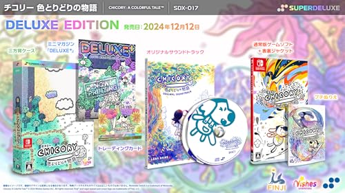 チコリー 色とりどりの物語 DELUXE EDITION -Switchは、オリジナルマイルドライナー、デジタル壁紙、特典ジャケット、三方背ケース、ミニマガジンなどが付属。サウンドトラックも同梱。