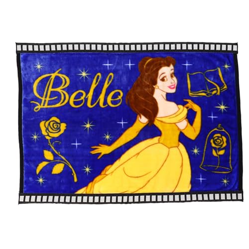 丸眞のディズニー美女と野獣、ベルデザインのふわふわブランケット。ポリエステル製でおしゃれなデザイン。防寒グッズとしてもおすすめ!