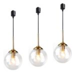 HFUGUDの3灯ペンダントライトは、クリアガラス製のボール型シェードを使用し、ダクトレールに対応。北欧風のスタイルで、ダイニングやキッチン、玄関に最適なアンティークレトロなデザイン。