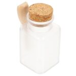 PAMINGONOの浴用塩詰め替えボトル6個セット。広口プラスチック容器に木製コルク蓋付き。化粧品パウダーやバスソルトの保存に最適なボディケア用容器です。
