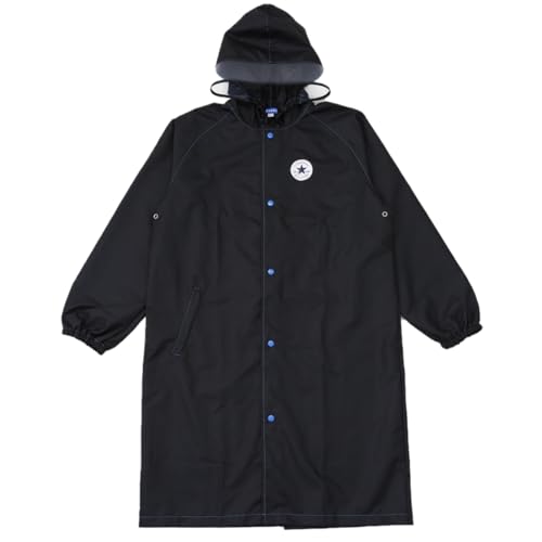小川のコンバースキッズレインコートは、150cmサイズの男女兼用で、ブラックカラーです。ランドセルやリュックの上から着用可能で、調整タック付き。収納袋も付いています。