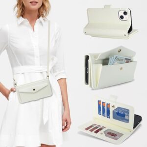 【Hamany】 いphone14 ケース 手帳型 スマホ ショルダー iphone 14 ケース カード収納 大容量 スマホケース iphone 13 スタンド機能 財布型 耐衝撃 耐久性 全面保護 女性 肩がけ 首掛け 斜め掛け ショルダー 携帯カバー -アンバー ホワイト