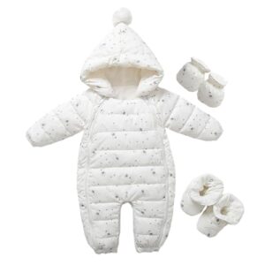 Baby nest ベビー服 ジャンプスーツ 長袖 ロンパース ダウンコート カバーオール クマ コート 手袋 足袋 防寒 秋冬用 男の子 女の子 白 73 6-9ヶ月