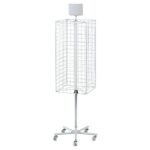 4面回転ネットディスプレイは、白色の什器でポップ立てが別売りです。フックを使用して商品を効果的にディスプレイできます。ストア・エキスプレスの商品です。