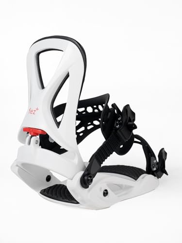ビンディング スノーボード FEZ+ BINDINGは、ホワイト・ブラック・レッドの3色展開で、M/Lサイズ(26.5cm-29cm)に対応。The Channelシステムにも対応しており、軽量でビギナー向けのエントリーモデルです。男女兼用で初心者にも最適です。