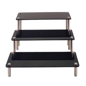 pokiele アクリルステージ 3段 ディスプレイスタンド 組み立て式 陳列棚 フィギュア棚 アクリル展示台 (ブラック, 3段 40cm幅 5mm厚)
