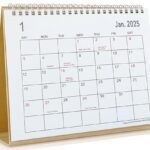 2025年1月から2026年6月までの卓上カレンダー。サイズ8.4インチ x 7.4インチのスタンディングフリップタイプ。ホームオフィスに最適な18か月間のプランニングツール。