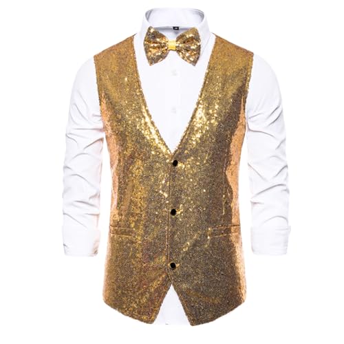 [ADOSSY] スパンコール ベスト メンズ 蝶ネクタイ セット キラキラ 舞台 衣装 ダンス 発表会 コスプレ パーティー イベント ステージ 演出 ジレ (JP, アルファベット, XL, ゴールド)の製品情報