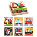 キューブパズルは、6種の絵(動物、昆虫、果物など)の木製立体パズルです。モンテッソーリ教育に基づいた知育玩具で、子供向けの積み木として遊びながら学べます。