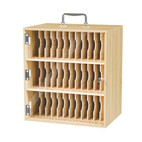 YASICA スマホ収納ボックスは、36台収納可能でロック付き。組み立て不要で充電穴搭載。省スペースで紛失防止に最適な木製ストレージ。サイズは29.5x21x32.4cm。