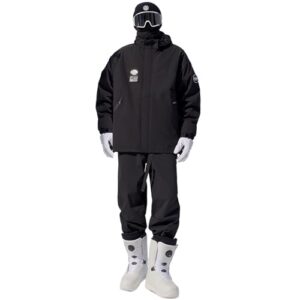[Vellichor] 2025年冬最新デザイン スノーボードウェア 男女兼用 上下セット スノボ ウェア 防寒保温 おしゃれ 軽量 撥水&高透湿 スキーウェア 中綿 裏起毛 レディース スキー メンズ 大きいサイズ ジャケット パンツ ボードウェア (ブラック, 3XL)