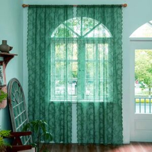 Deeproveダークエメラルドグリーンレースシアーカーテン長さ84インチ2パネルセット、ハンターフローラルヴィンテージウィンドウトリートメントクリスマスペアデコレープボーホービクトリア朝のベッドルームリビングルーム用、幅57x長さ84
