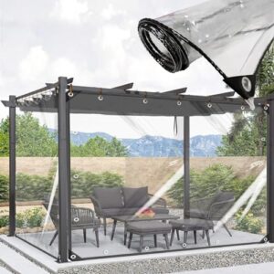 Bgyftw風除けテント透明PVCは0.35mm厚、サイズ0.5×1.5mで、雨よけ・防寒に最適。400g/㎡透湿防水シートでペットや植物を守ります。カーテンアイレット付きで使いやすい。