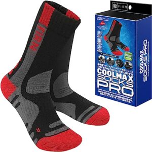 [FIRN] フィルン クールマックス ソックス プロ 高機能 アウトドア 靴下 ハイキング トレッキング 通気 吸水速乾性 軽量 中厚手 登山 クッション 水ぶくれ防止 クルー丈 スポーツ キャンプ 男女兼用 (M, レッド)
